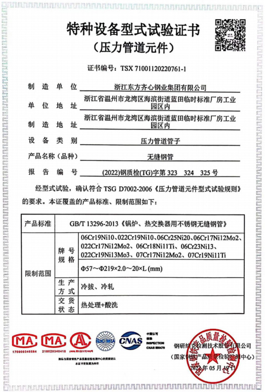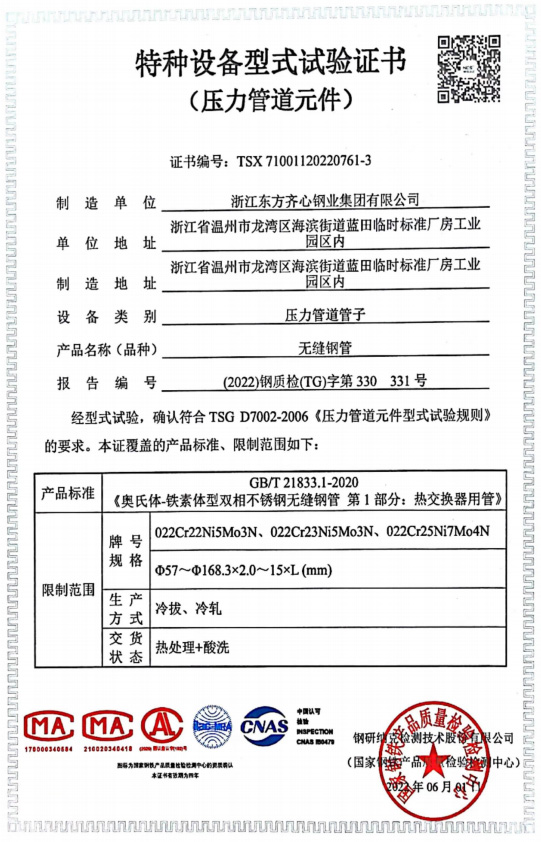 浙江東方齊心以不銹鋼系列產品為主導,品種有不銹鋼管、奧氏體不銹鋼管、高溫合金鋼管、雙相不銹鋼管、鎳基合金管、冷凝器用管、U形管、核電管、不銹鋼管件、法蘭、閥門等。規(guī)格有6-2020x0.8-60mm,Ф16-25長度可達33m。公司擁有精密制造鋼管的各類機械設備25臺(套),其中各類冷軋管機15臺, 冷拔機10臺,天然氣熱處理爐2套。